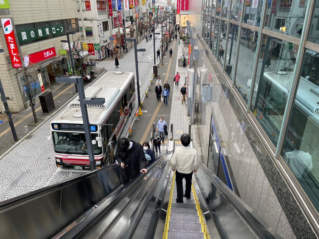 2、正面に見えるコラルの脇の下りエスカレーターで降ります。