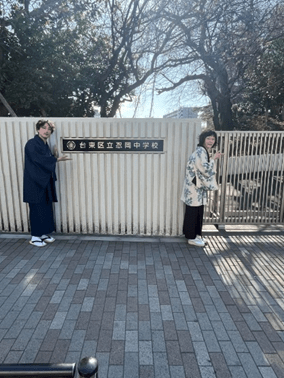 2.NEWDAYS(コンビニ)を右に見て、直進です。横断歩道を渡ると「区立忍岡中学」の入り口。ここを右に進みます。