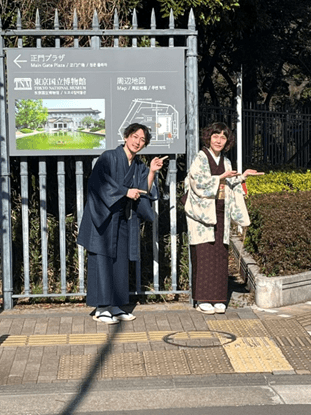 到着!東京国立博物館西門です。ここで係の者が名札をお渡ししますので、それを受け取って九条館へ!